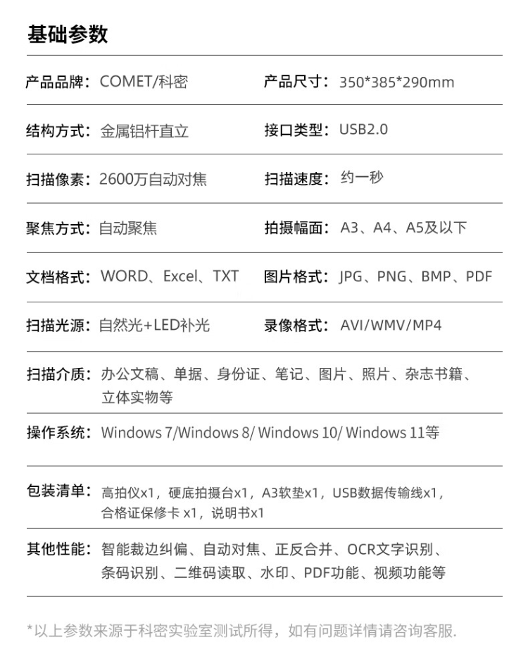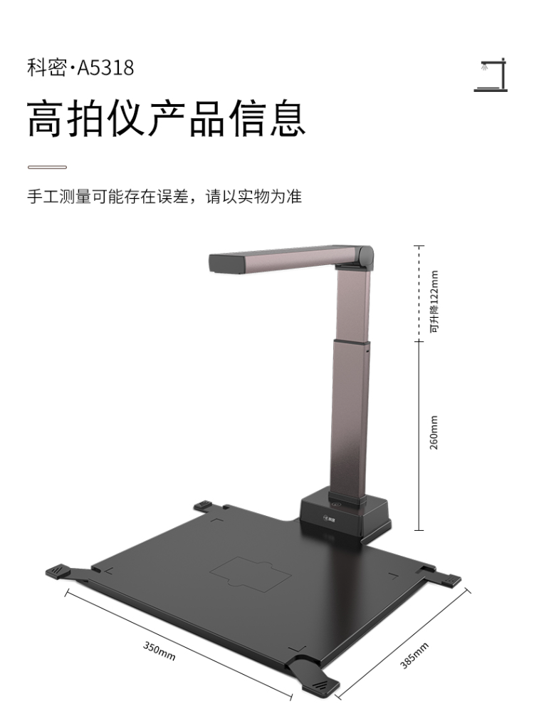 科密 A5318 高拍仪2600万高清像素A3A4扫描仪远程网课图书馆档案室A3A4扫描仪