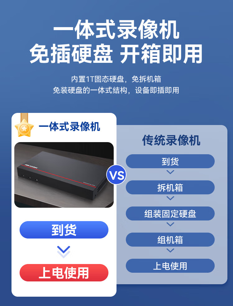 海康威视固态硬盘录像机高清监控主机1TBssd一体机|DS-7804N-F1/SSD-1T