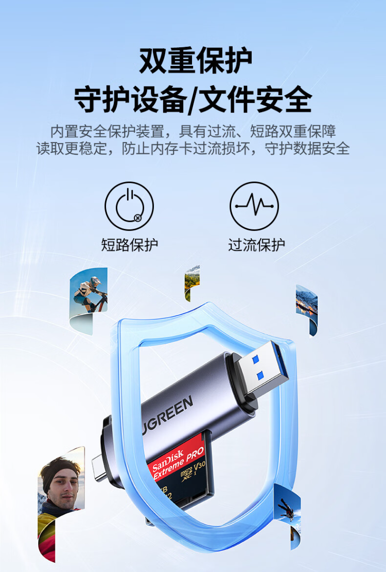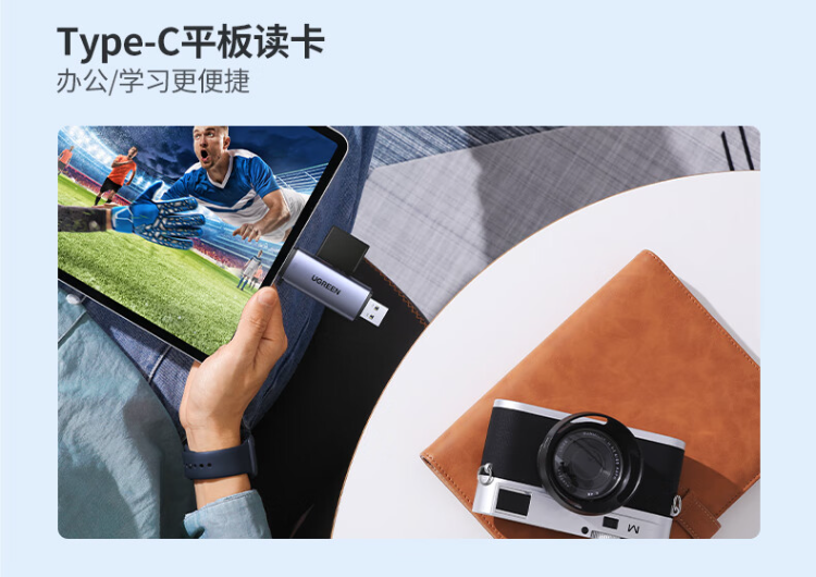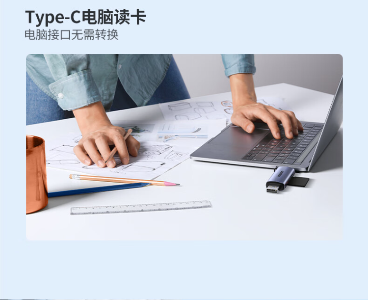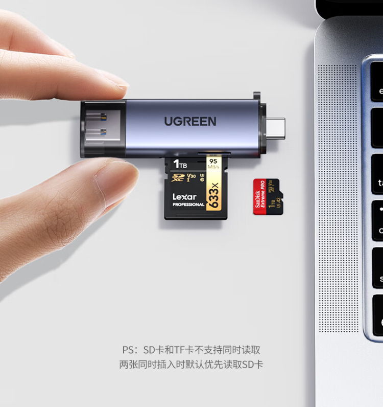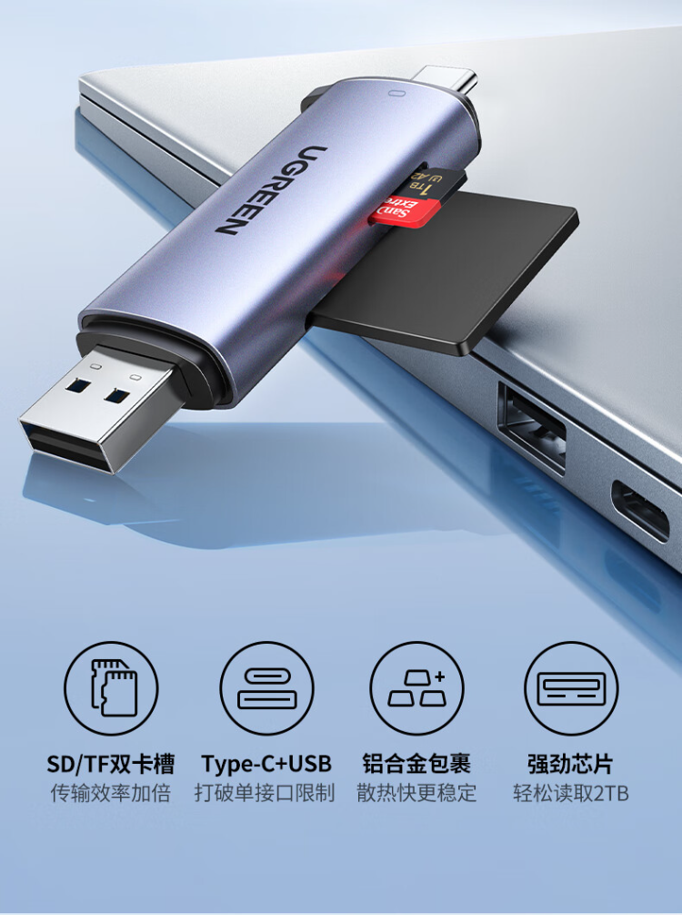 绿联 CM185-45032 USB/Type-C 2.0高速读卡器 SD/TF