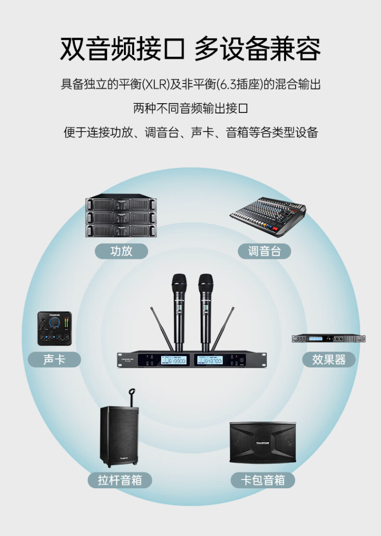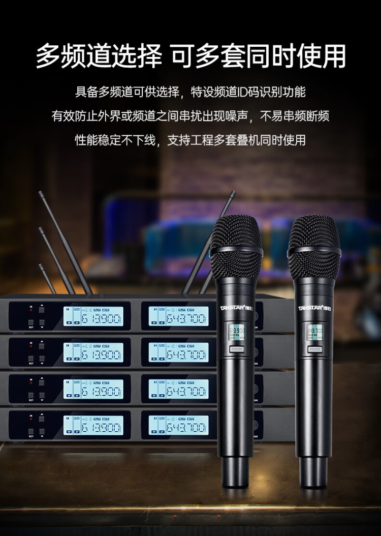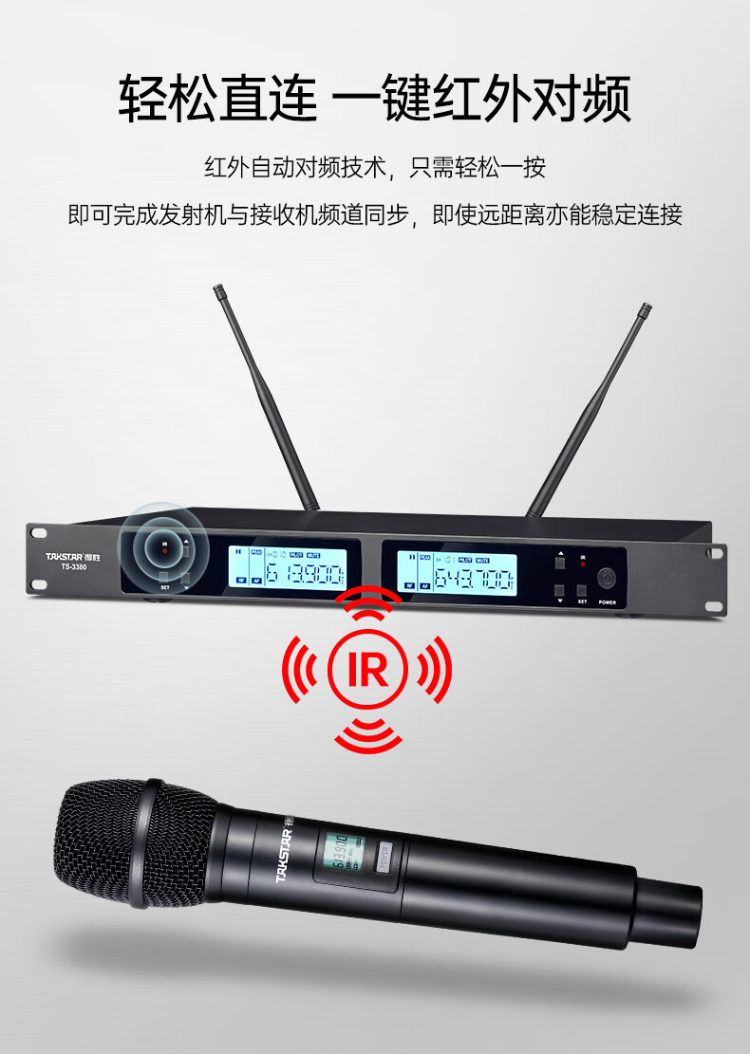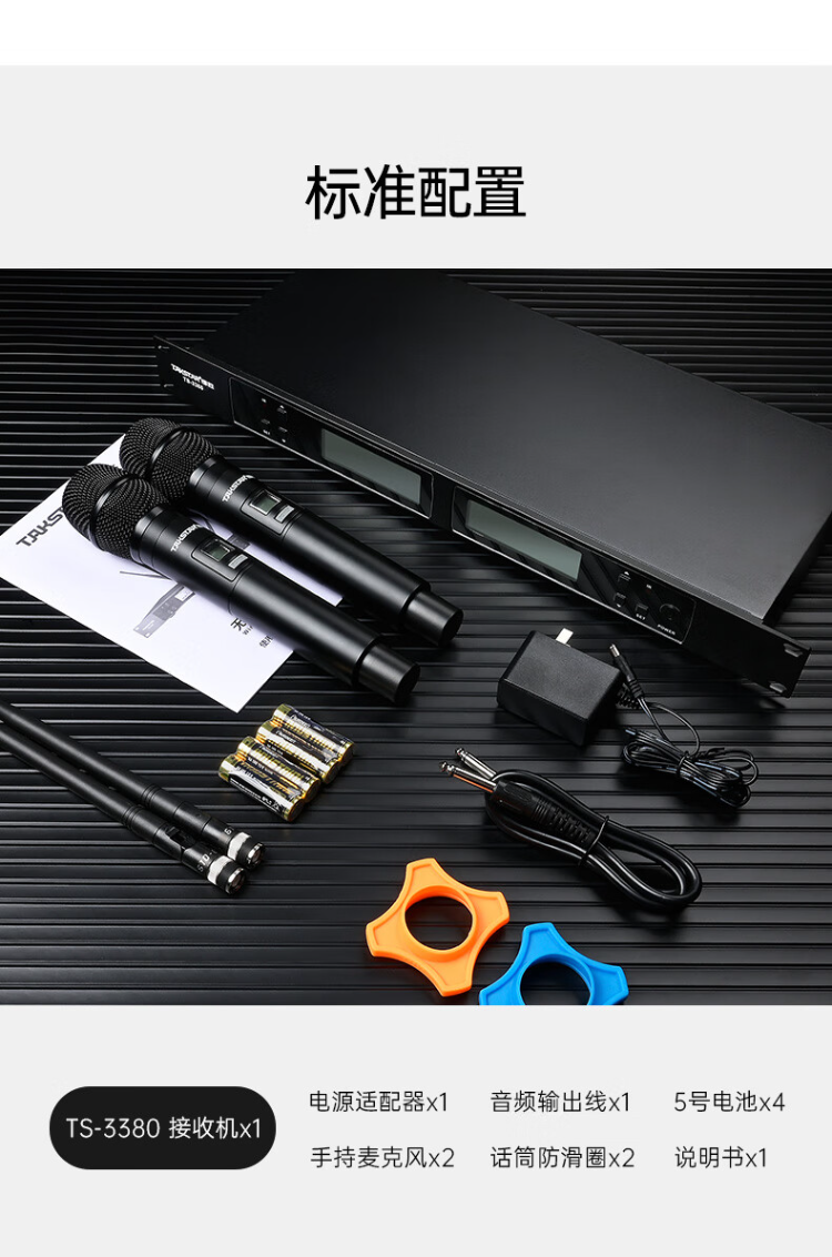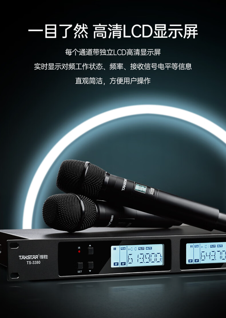 得胜 TS-3380 无线麦克风一拖二 家庭ktv专业k歌手持会议主持舞台演出 黑色